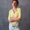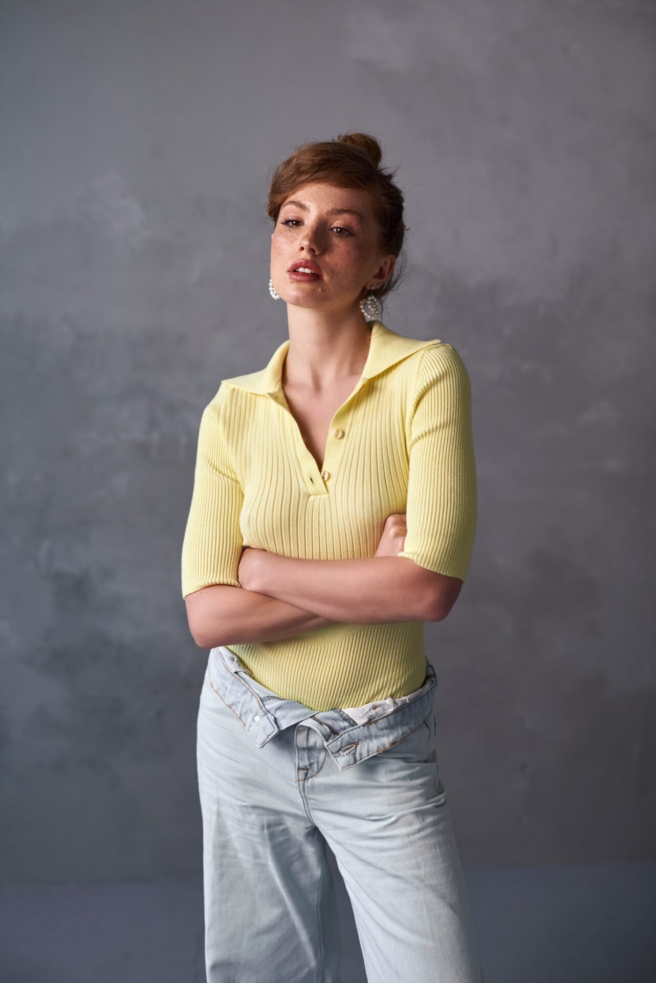 Боді – класна база у шафі , яка підкреслить силует фігури , а за рахунок трендового кольору стане акцентним елементом в образі. Виріб виконаний з еластичної віскози з стійкою поло та коротким рукавом. Боді йде на кнопках, що комфортно та довговічно в експлуатації , а планка оздоблена ґудзиками, як елементом декору.