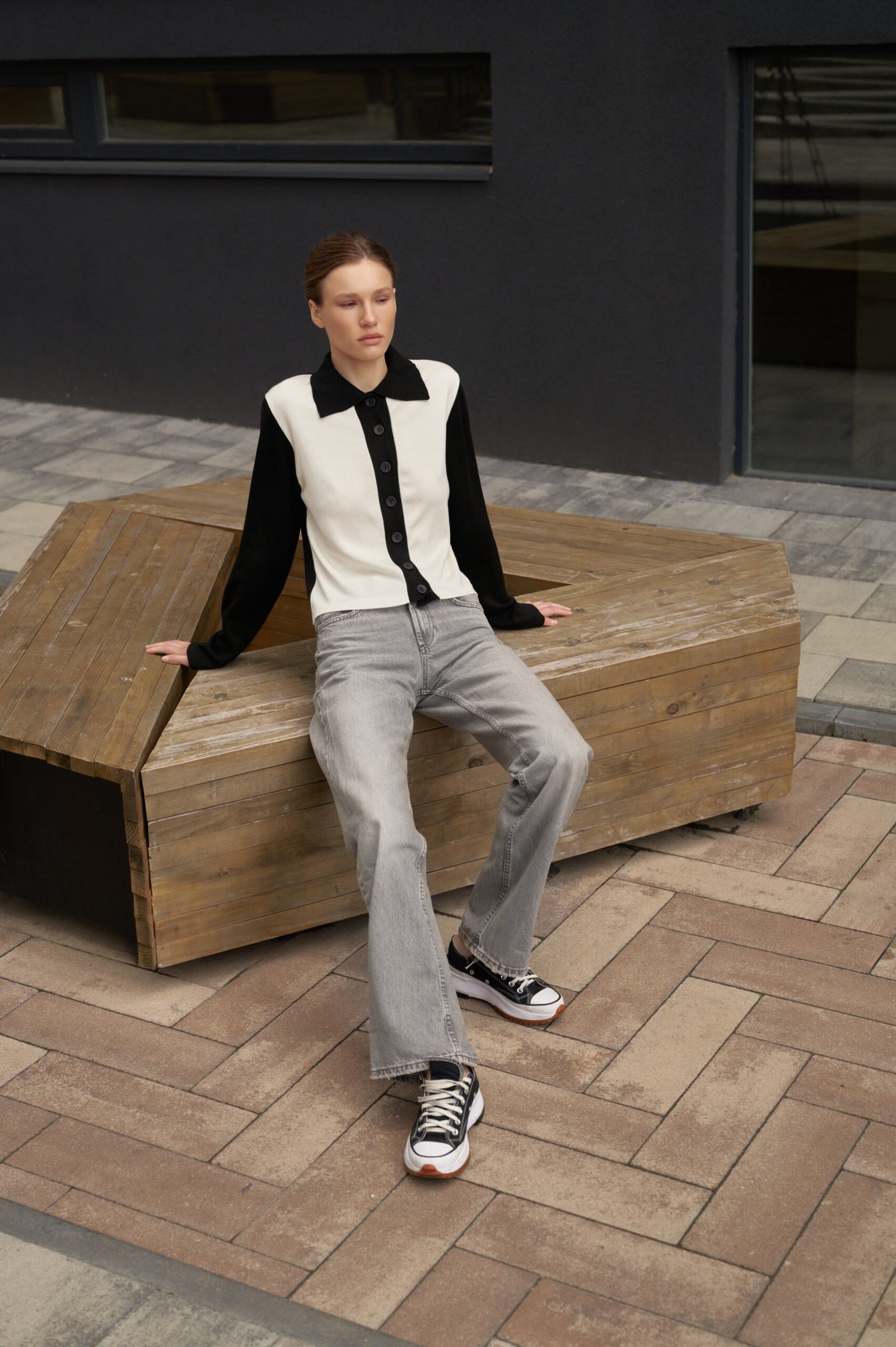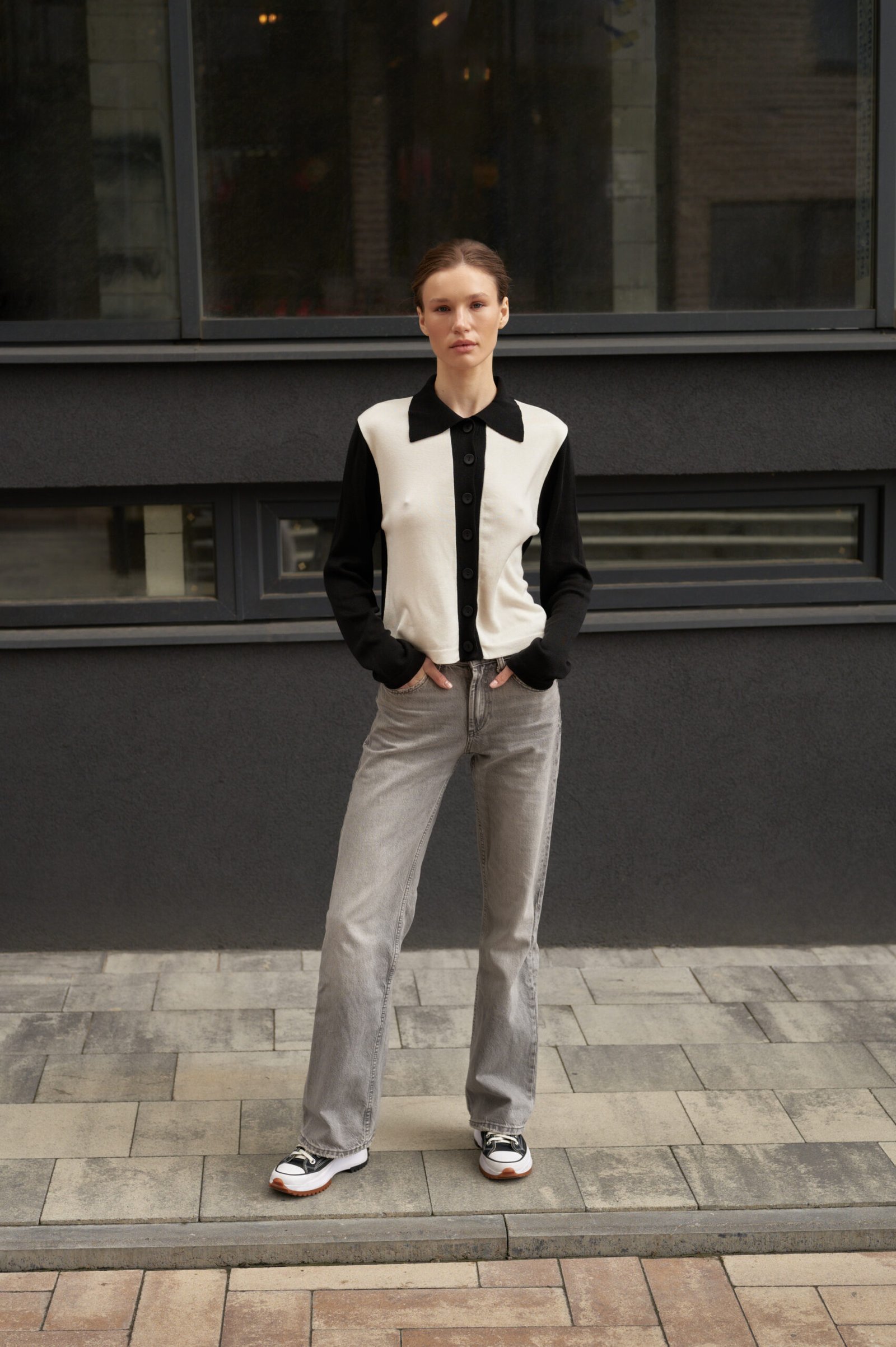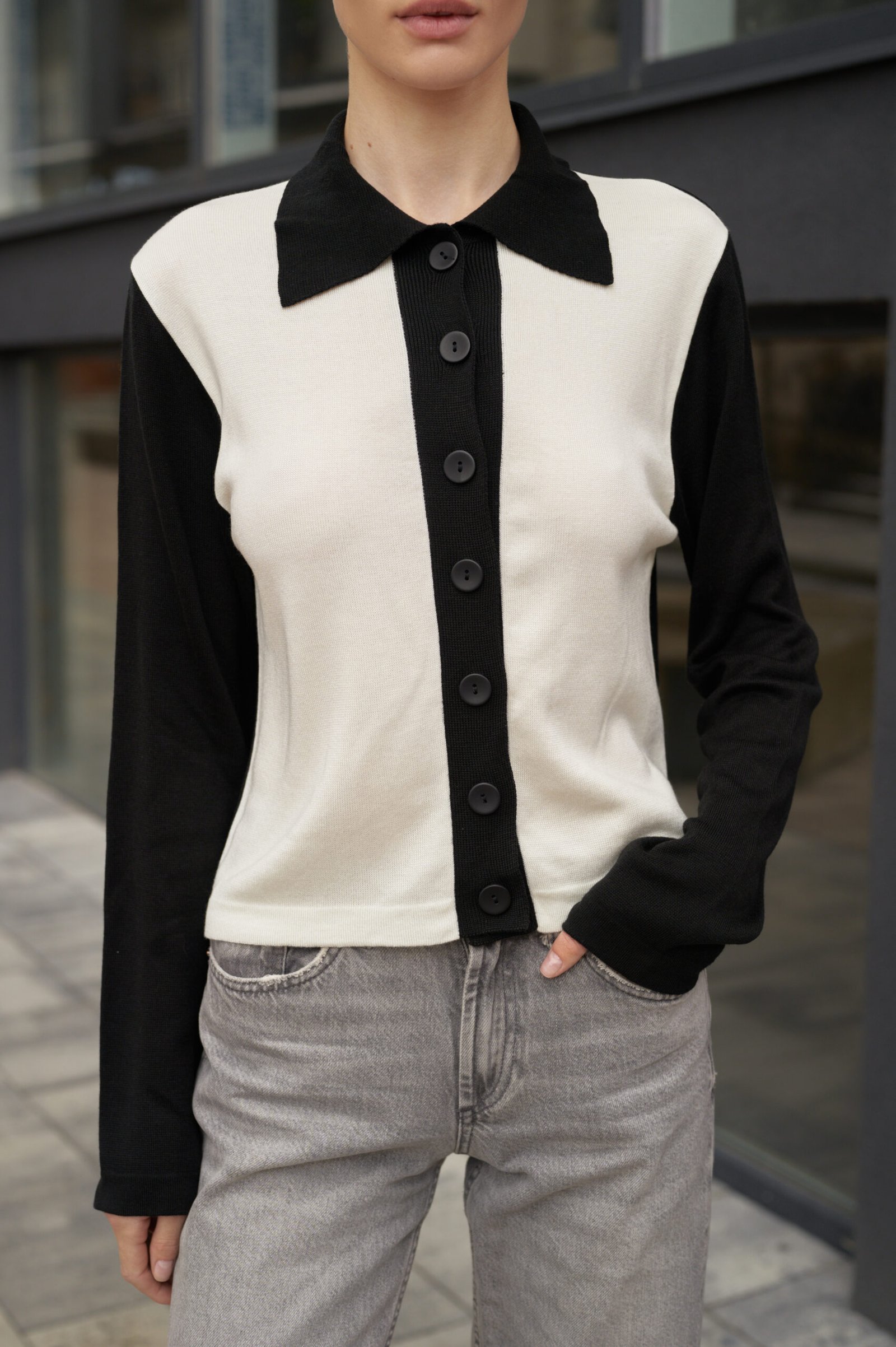 Кардиган “Black and White” – це твоя нова улюблена класика з характером. Ми поєднали в ньому лаконічний крій поло та ефектний дизайн, щоб створити річ, яка завжди буде в центрі уваги. Контрастні чорні рукави, комір та планка виразно підкреслюють світлу основу, додаючи образу динамічності. Кардиган виконаний з натуральної та еластичної пряжі, що м’яко огортає тіло та ідеально сідає по фігурі. Носи його застібнутим як самостійний верх у поєднанні з джинсами або брюками, або накидай зверху на майку для створення стильного багатошарового образу.