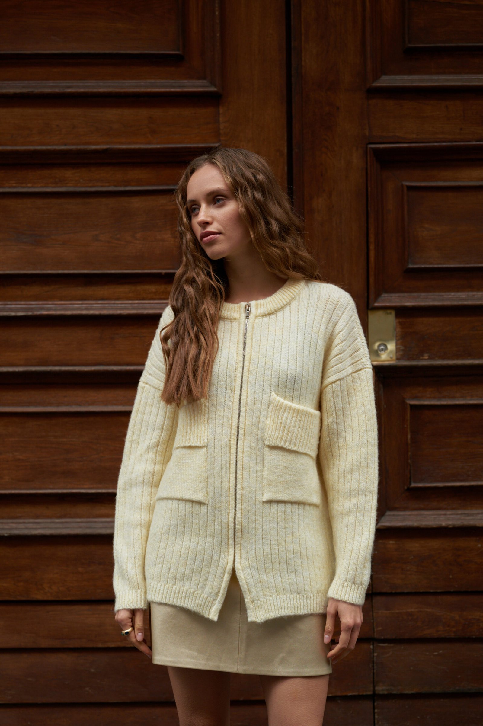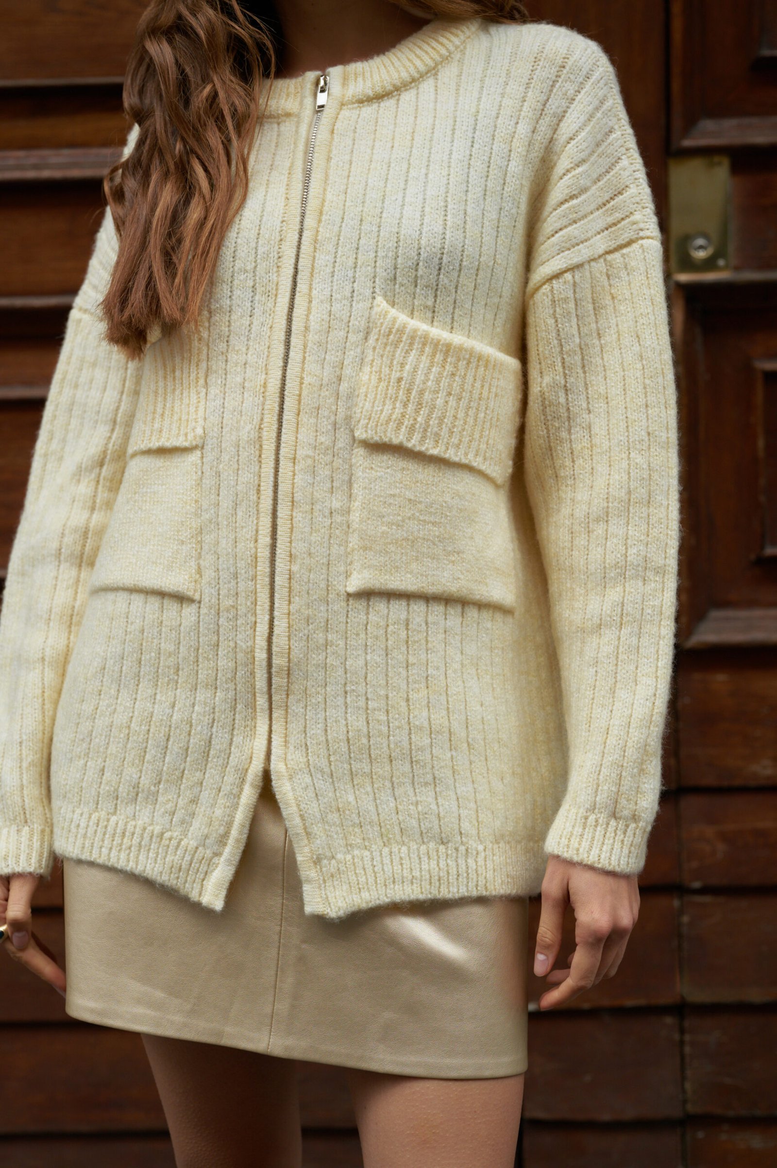 Кардиган “Merino-Pock” виготовлений з натуральної пряжі, що забезпечує м’якість, тепло та комфорт у носінні. Виріб має легку ворсисту текстуру, приємний до тіла та добре утримує тепло. Модель має прямий крій зі спущеною лінією плеча, що створює вільну, комфортну посадку. Функціональна металева блискавка та симетричні кишені виступають стриманими акцентами та додають виробу практичності.