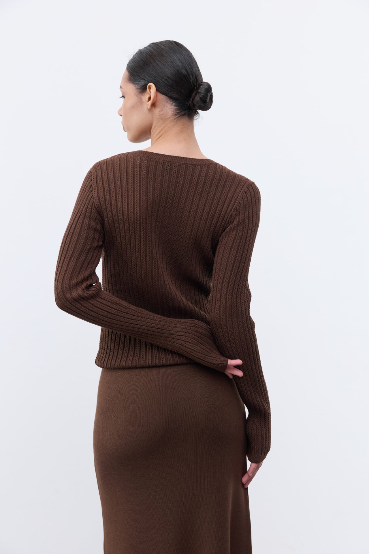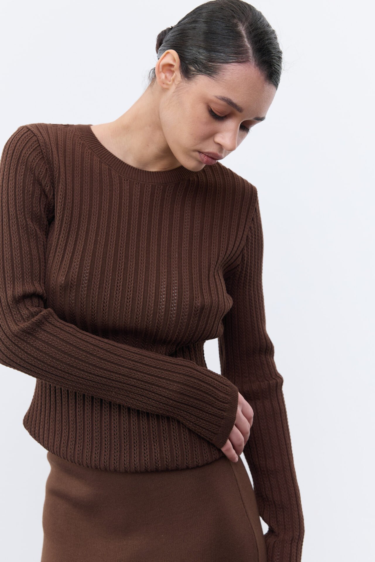 Лонгслів фактурної вʼязки , яка візуально нагадує форму «зерна». Виріб простий та незвичний водночас за рахунок свого узору та трішки подовженого крою рукава. Лонгслів буде незамінною та улюбленою базою у шафі.