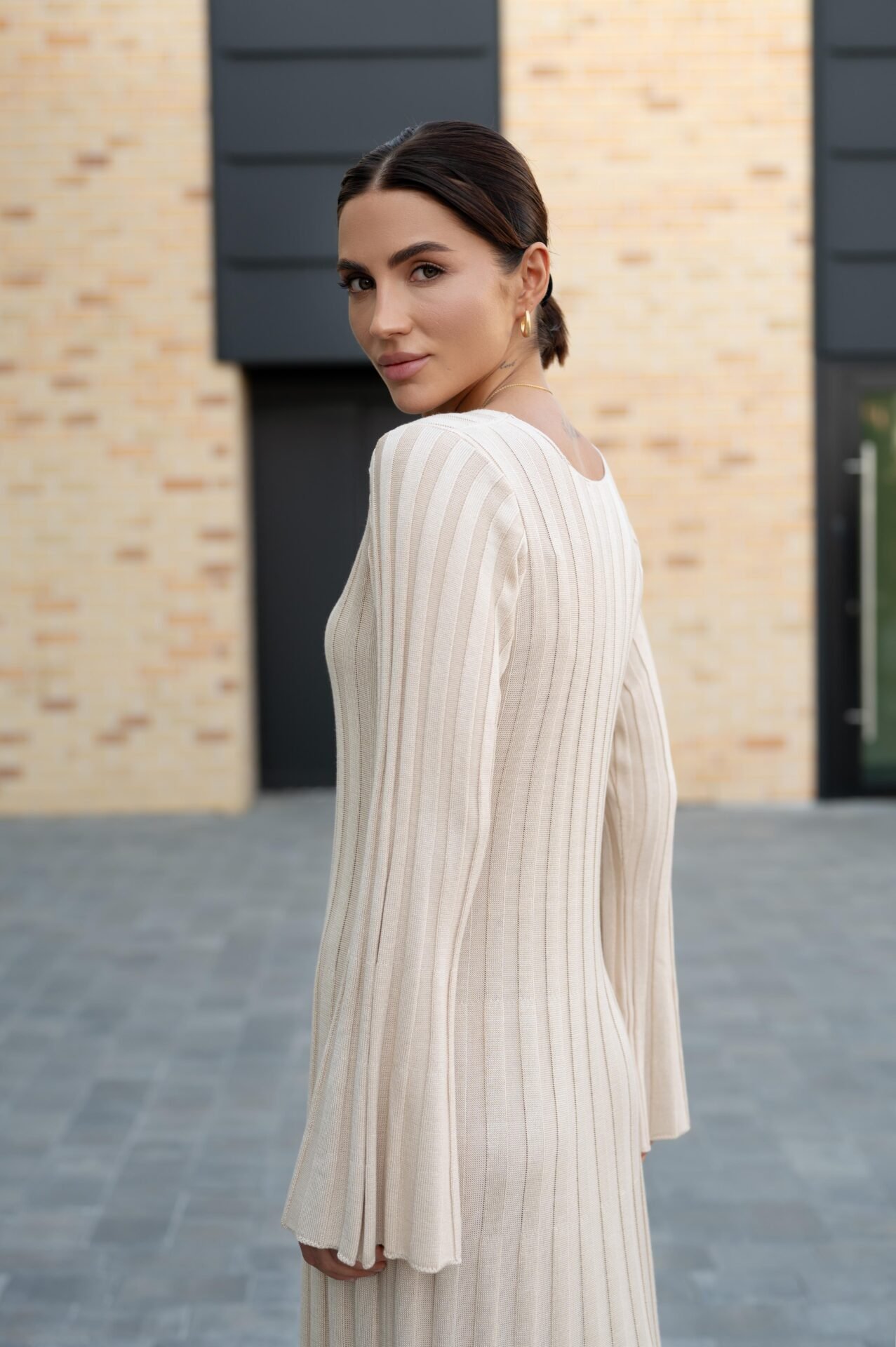 Практична , легка та водночас стильна сукня. Виріб має рукав – кльош, акцентну талію та спідницю А-форми , чим підкреслить жіночний силует та не обтяжуватиме стегна.