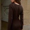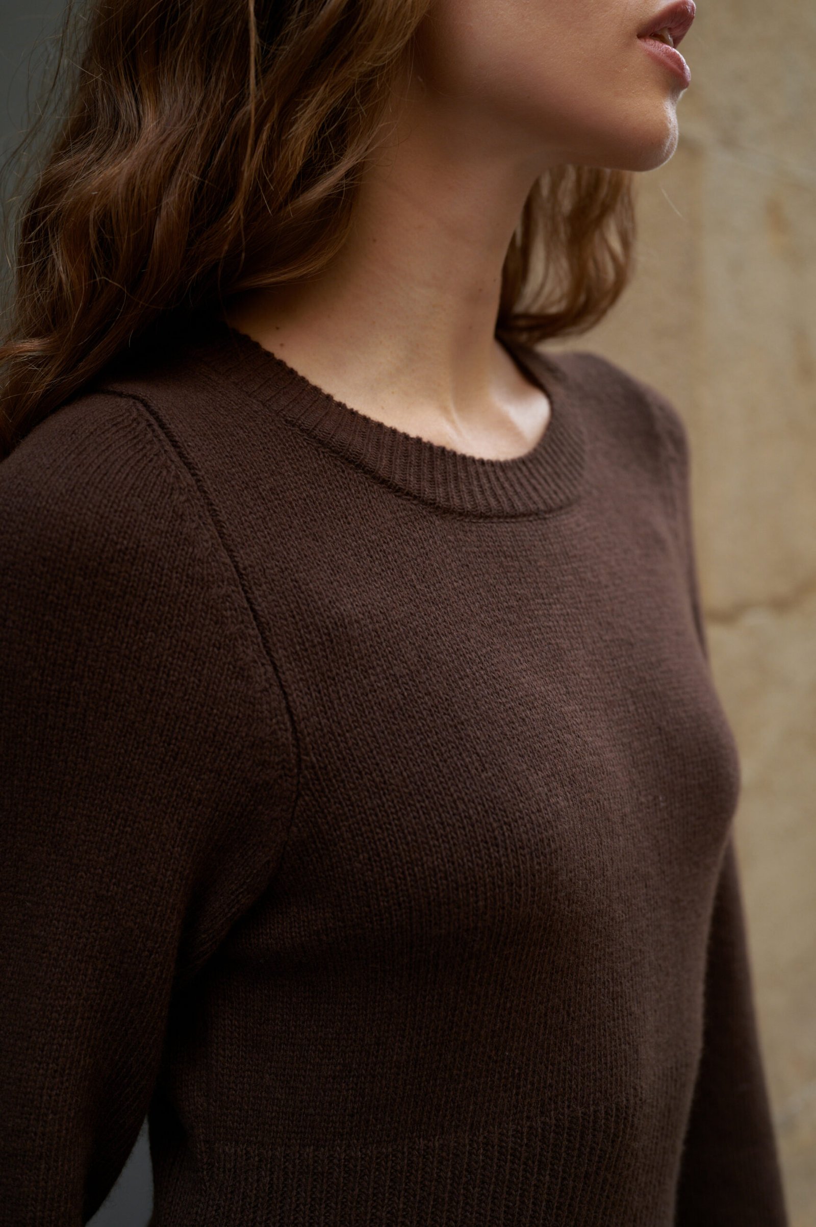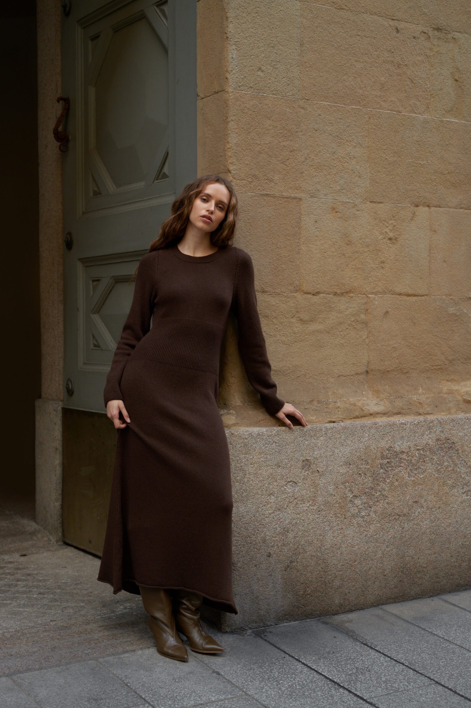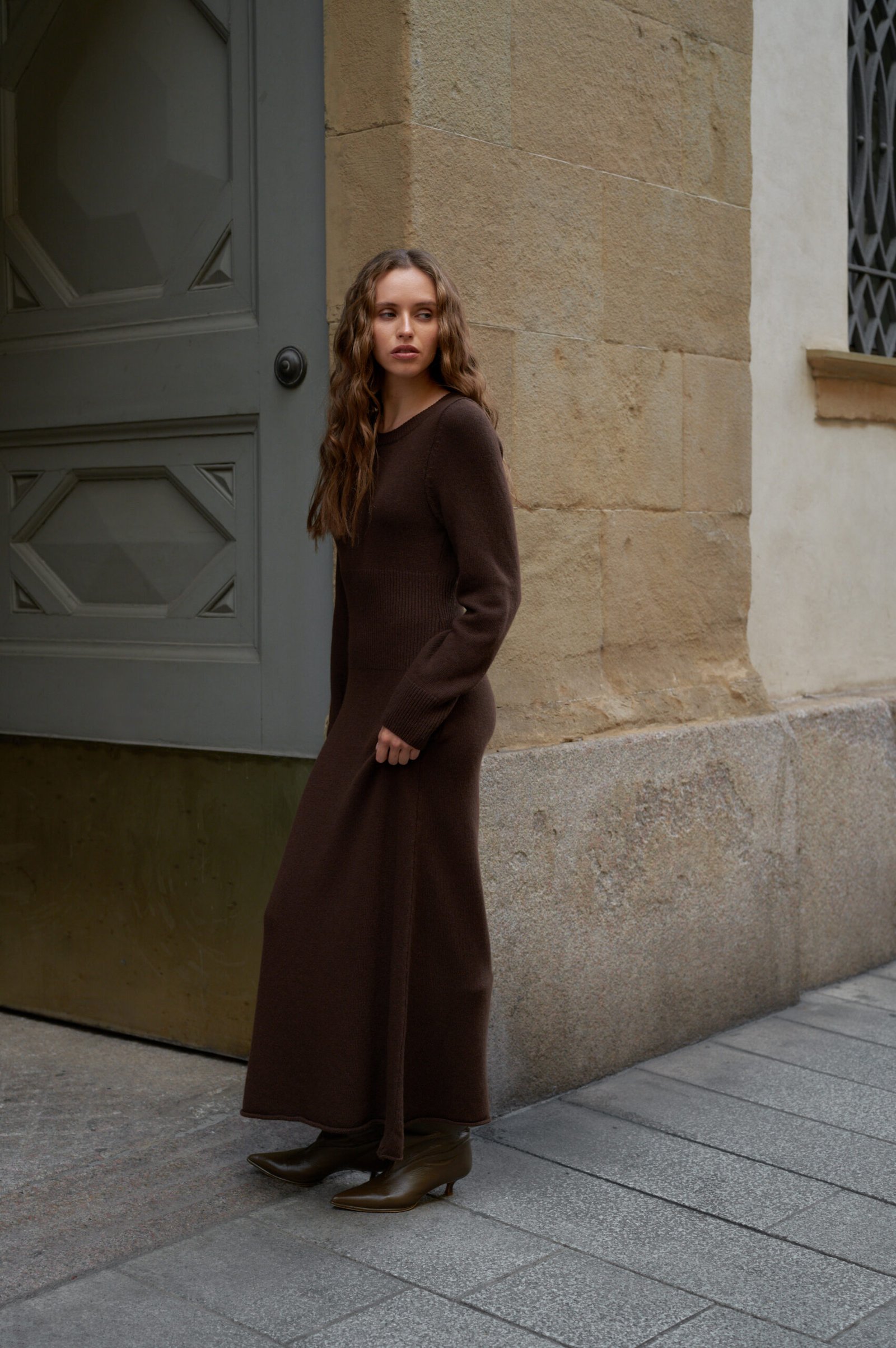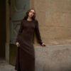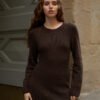 Сукня “Lamb” – втілення жіночності та комфорту, виконане з натуральної пряжі. Матеріал приємний до тіла, м’який і добре утримує тепло, забезпечуючи комфорт у прохолодну пору. Завдяки приталеному силуету та еластичній структурі в’язки, виріб делікатно підкреслює фігур. Акцентним елементом моделі є широка фактурна вставка на талії, яка візуально моделює силует та додає образу витонченості.