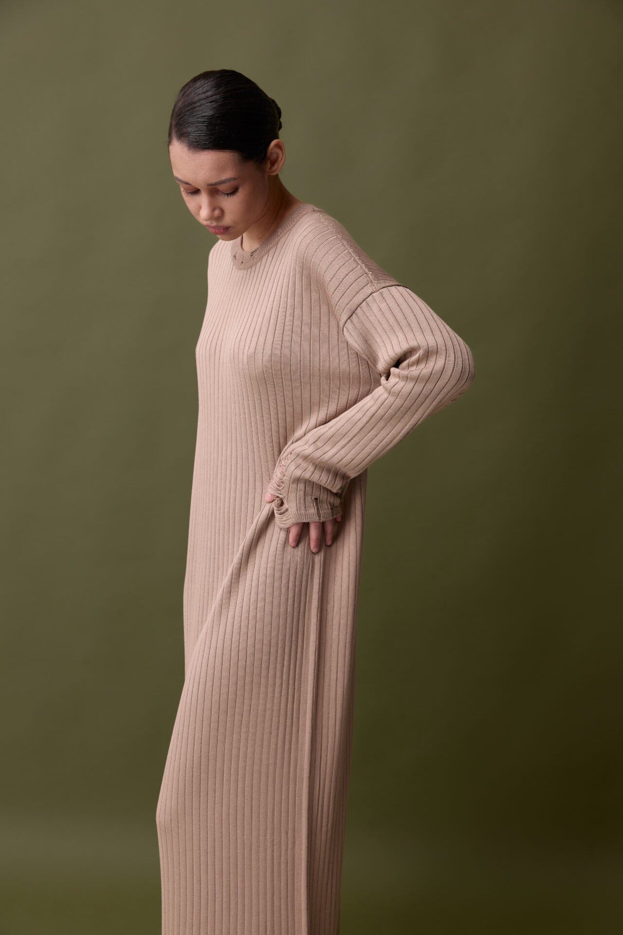 Сукня вільного крою з трендовим рваним низом виробу та рукавом класно підійде на різні параметри та типи фігури, а також під час вагітності. Виріб виконаний з натуральної пряжі – віскози , тому буде легким , невагомим, мʼяким , еластичним та вільним.