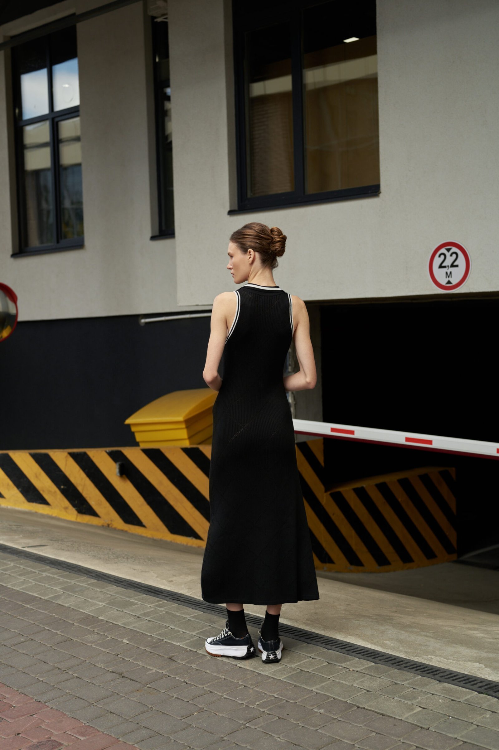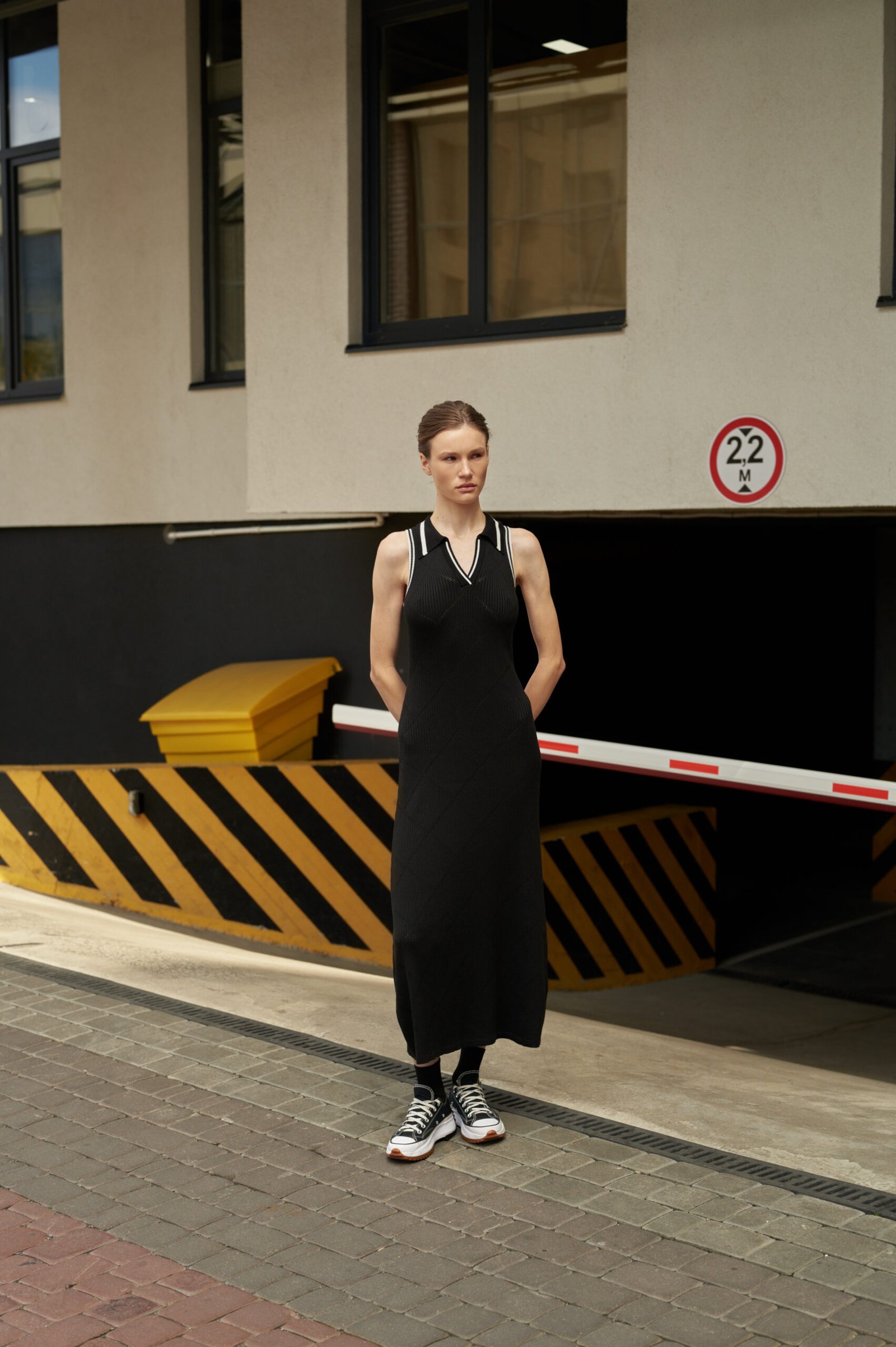 Сукня “Ромб-Максі” – виріб, головна особливість якого – фактурна рельєфна в’язка у вигляді ромбів, що додає образу глибини та унікальної текстури. Елегантний комір-поло з контрастною обробкою та відкриті плечі створюють виразний і жіночний акцент. Довжина максі візуально видовжує силует, а м’яка пряжа делікатно окреслює фігуру, не сковуючи рухів. Ця сукня ідеально підійде для останніх теплих вечорів оксамитового сезону, а для прохолоднішої погоди просто додай зверху улюблений жакет або кардиган.